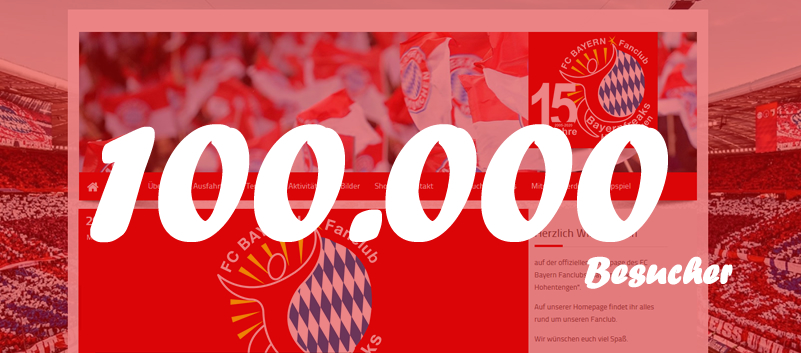 www.bayernfreaks.com den aktuellen Stand des Fanclubs informiert. So feierten wir heute den 100.000 Besucher auf der Homepage. Dafür gilt es unseren Mitgliedern und Fans einmal Danke zu sagen. Wir sind stets bemüht euch Neuigkeiten, Infos und Bilder des Fanclubs sehr aktuell auf der Homepagezu präsentieren. In diesem Sinne auf die nächsten 100.000.