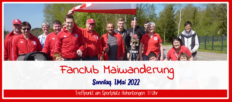 Die Bayernfreaks planen dieses Jahr wieder eine Maiwanderung. Am Sonntag den 1.Mai 2022 starten wir ab 11 Uhr am Sportplatz Hohentengen mit einer kleinen Wanderung. Anschließend folgt dann der gemütliche Teil auf dem Enzkofer Berg. Für Getränke ist gesorgt, Essen bzw. Grillzeug bitte jeder selber mitbringen. Bei schlechter Witterung findet die Maiwanderung nicht statt. Bitte meldet euch bis 29.04.2022 beim Präsi an, damit wir besser planen können. Wir freuen uns auf Euch liebe Mitglieder!