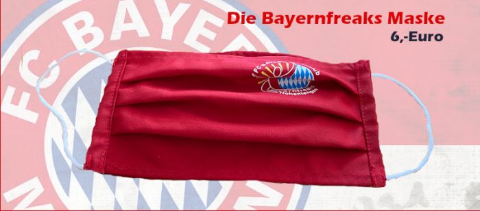 Aufgrund der aktuellen Situation und weiterhin bestehender Maskenpflicht, haben wir uns entschlossen eine eigene Fanclub Maske herzustellen. Die Bayernfreaks Maske ist nicht nur optisch ein echter Hingucker, sondern soll auch in unserem Alltag als Schutzvorkehrung eine Hilfe sein.