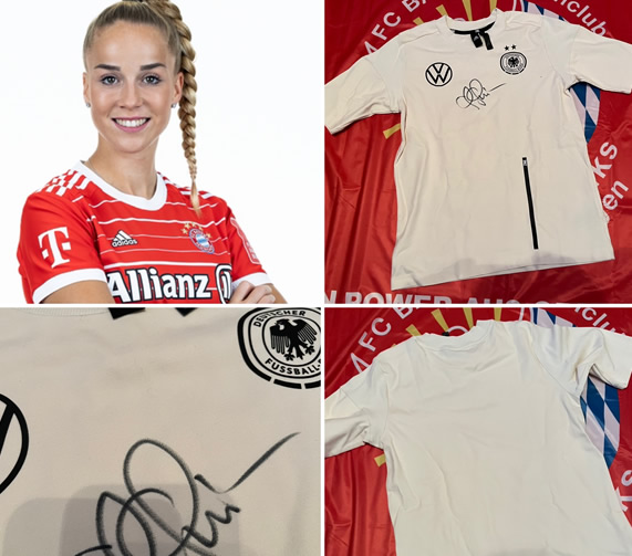 so kurz vor Weihnachten haben wir noch ein ganz besonderes Highlight für euch. Wir versteigern Fussballschuhe mit original Unterschrift von unserem deutschen Nationalspieler Joshua Kimmich, ein unterschriebenes FC Bayern Trikot von unserem Talent und deutschen Jugendnationalspieler Paul Wanner, sowie zwei unterschriebene und getragene DFB Oberteile von unserer deutschen Nationalspielerin Giulia Gwinn. Der komplette Erlös spenden wir für einen guten Zweck an das Kinderhospiz nach Bad Grönenbach.
