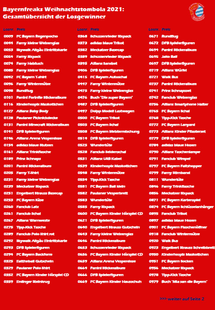 Weihnachtstombola: Die Gesamtübersicht der Losgewinner ist online